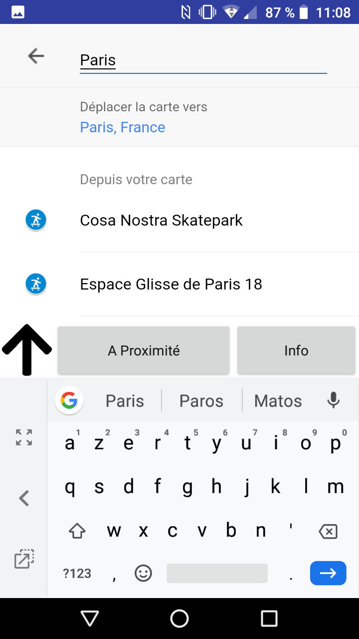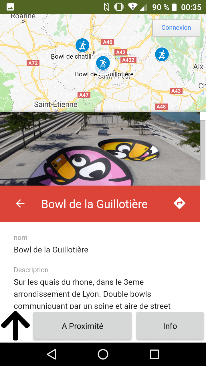 Elle permet de trouver les skateparks près de chez vous et d’accéder à l’itinéraire pour y aller.