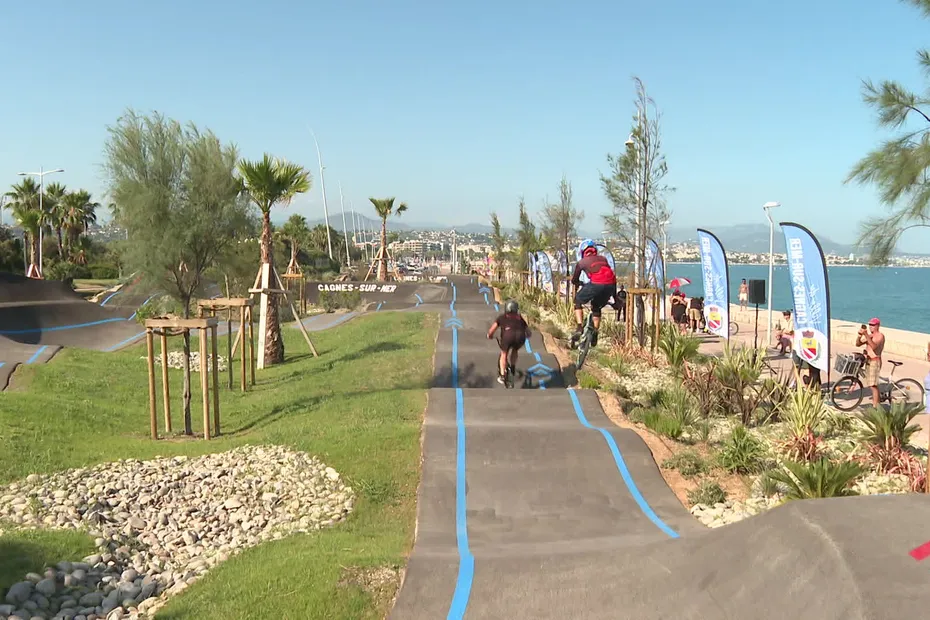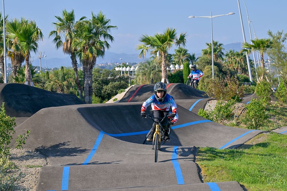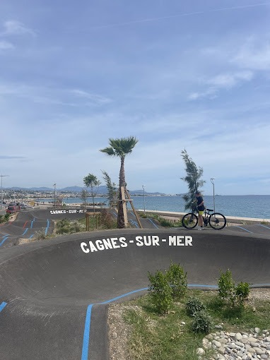 Plusieurs pistes, plusieurs niveaux le pumptrack de Cagnes sur Mer plaira à tout le monde (BMX, VTT, Roller, Skate, Trott).