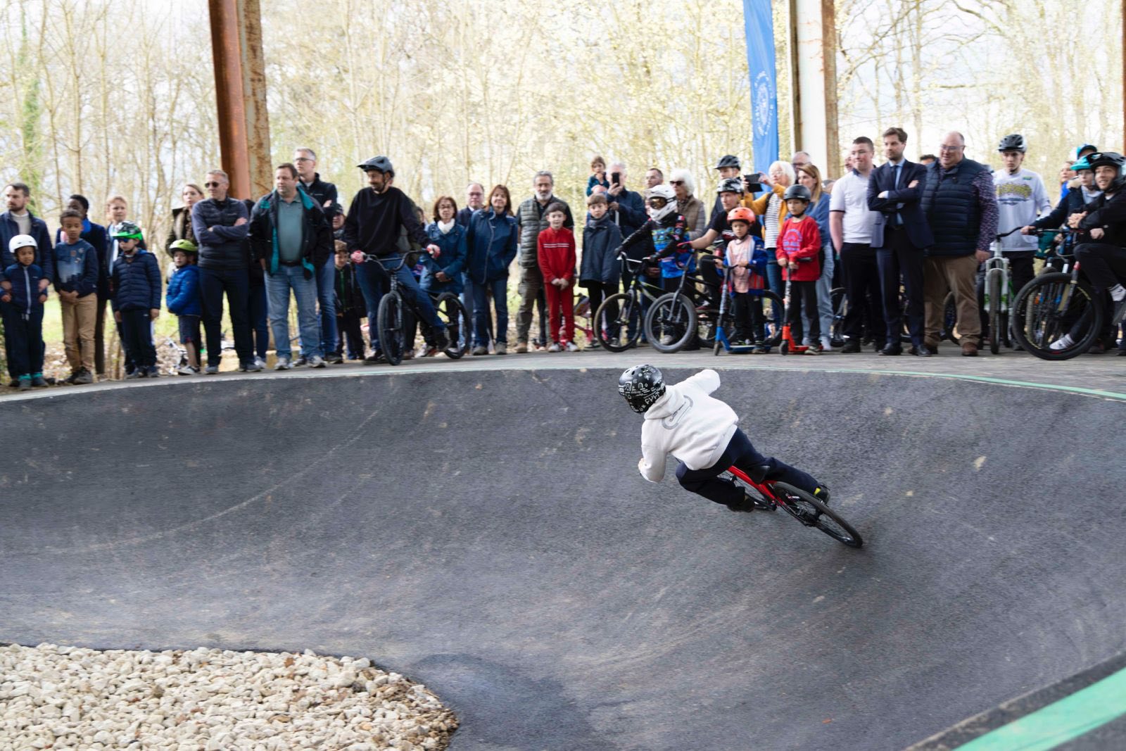 Ouvert en 2024 au mois de mars. Le pumtrack est gratuit, fait de goudron routier, en extérieur mais cependant couvert sur sa plus grande partie. C’est une infrastructure réalisée par CGConcept.